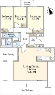 専有面積 | 58.07u | 間取り | 2LDK (-) | ||
